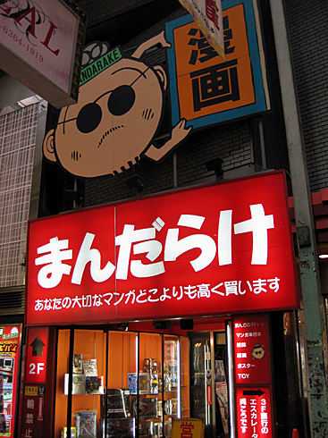 Fittingly for a quest of such magnitude, it’s a pain in the ass to get to the store. The easiest method is to take one of the south exists out of the JR Osaka Station (or the Hankyū Umeda Station across the street), get in a taxi, and pay the driver ¥660 to take you to the Osaka Tokyu Inn hotel. If you’re facing the Tokyu Inn, you’ll notice a Small Alley of Ultimate Sketchiness running alongside the right side of the hotel building. Turn left into the alleyway and keep walking until you emerge into a shopping arcade with the Mandarake right in front of you.